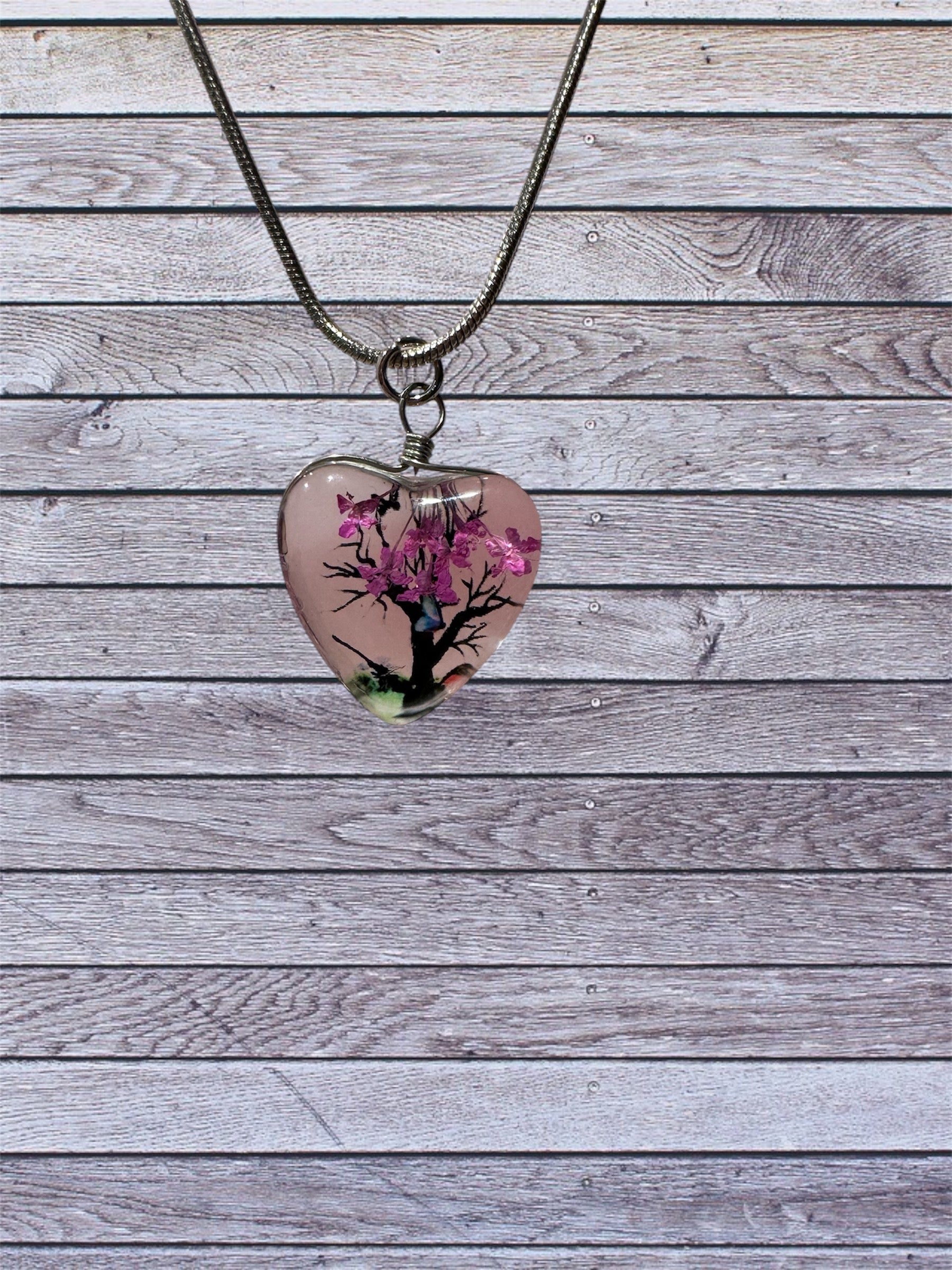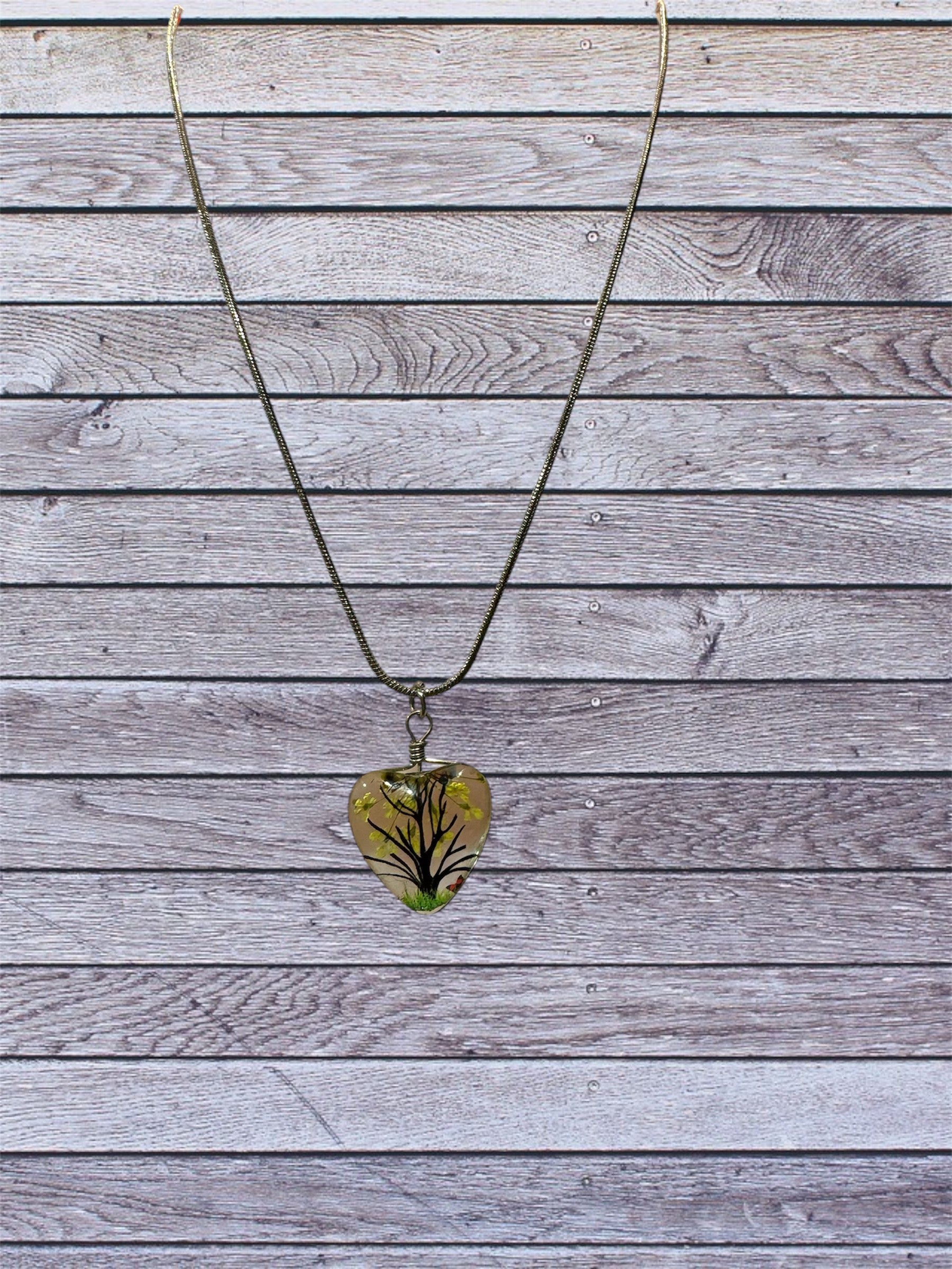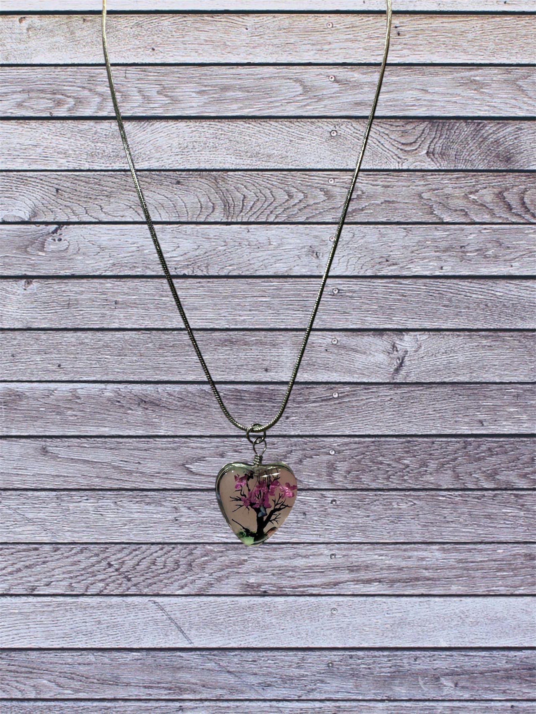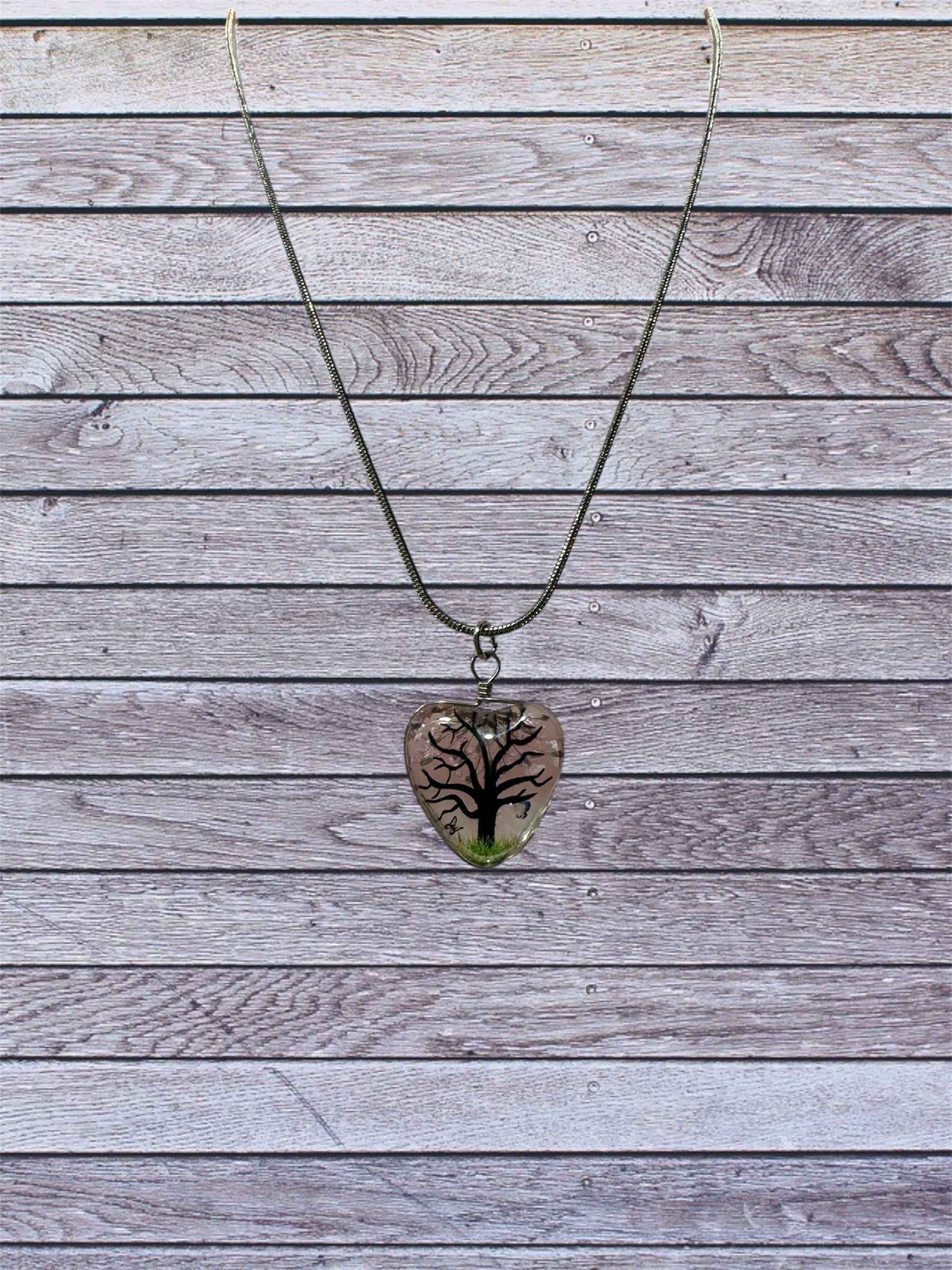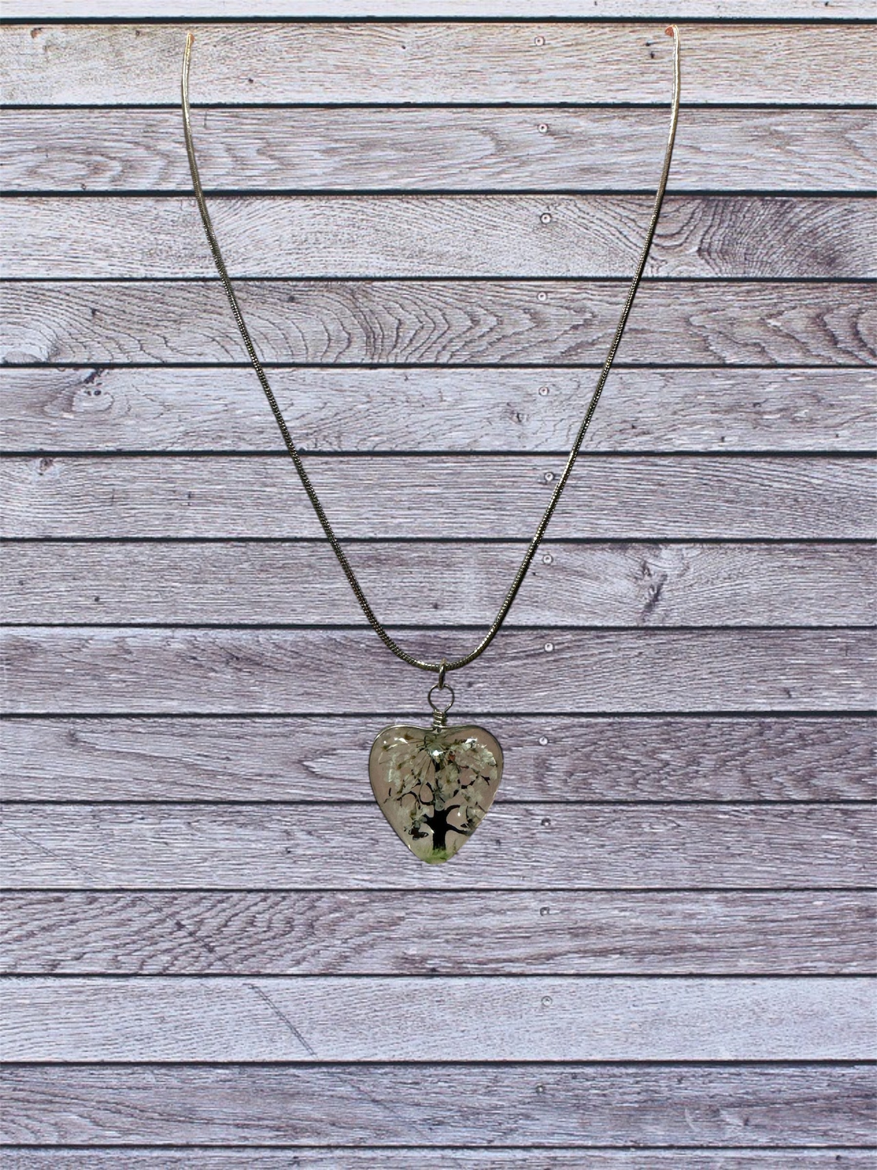 Resin Heart-shaped Tree of Life 20 inch Necklace - Silver